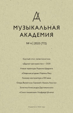 Журнал «Музыкальная академия» – научное и критико-публицистическое издание о музыке. Тематика статей, публикуемых в журнале, охватывает все области исследования, относящиеся к специальности «музыкальное искусство». Журнал рассчитан на музыковедов, ко...